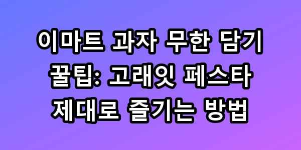 앞으로도 이마트에서 이런 즐거운 행사가 있을 때, 오늘 알려드린 꿀팁들을 꼭 활용해서 더욱 만족스러운 쇼핑을 하시길 바랍니다. 현명한 과자 담기로 얻는 기쁨은 생각보다 훨씬 크거든요.