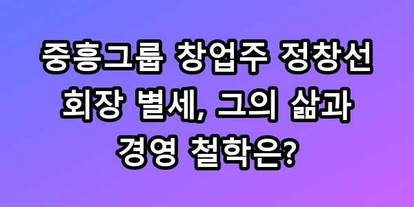 A2: 정창선 회장은 1983년 중흥주택을 설립한 후, 무리한 외형 확장보다는 ‘재무 건전성’과 ‘지속 가능한 성장’을 핵심 철학으로 삼았습니다. 감당 가능한 속도로 사업을 추진하고 신뢰를 쌓아 지역 건설사를 전국적인 대형 그룹으로 키워냈습니다.